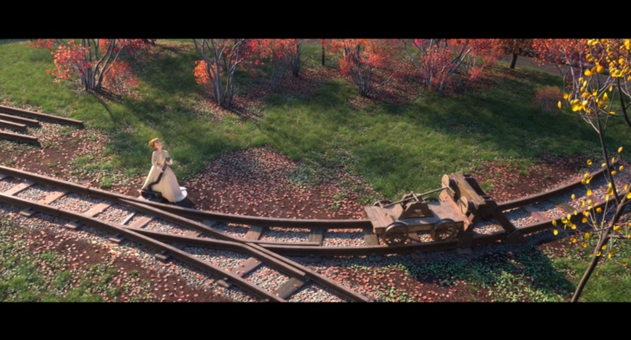 BUT THEN. Olaf boards a handcar2 on the train tracks, Anna changes the railway points to save him from careening away forever, the vehicle hits into a buffer stop, as seen in the image above, and then the laws of physics are irreversibly and unutterably broken in Arendelle for all time.